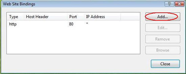 15. Na janela "Site Bindings", clique em "Adicionar" (Add). Então, a janela "Adicionar Site Bindings" (Add Site Binding) abrirá.